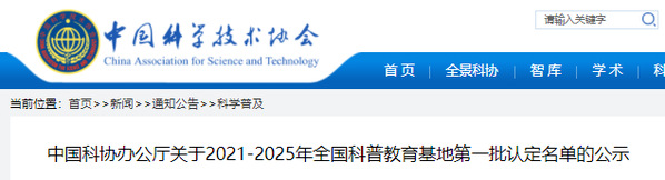 為貫徹落實《全民科學素質行動規劃綱要(2021—2035年)》,加強科普基礎設施建設,推進全國科普教育基地發展,團結引領廣大科技工作者和科普工作者,提升社會化科普工作能力,助力實施“科教興國”戰略和提高公眾科學文化素質,2021年中國科協啟動了2021-2025年度第一批全國科普教育基地創建工作。