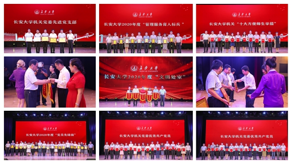 隨后對2020年度機關作風建設中評選出的20名“黨員先鋒崗”、10名“管理服務育人標兵”、“十大方便師生舉措”、5個“文明處室”,2020年度機關黨委評選出的32名優秀共產黨員、5個先進黨支部依次進行了表彰。參會領導為受表彰的集體和個人頒發獎牌和證書。
