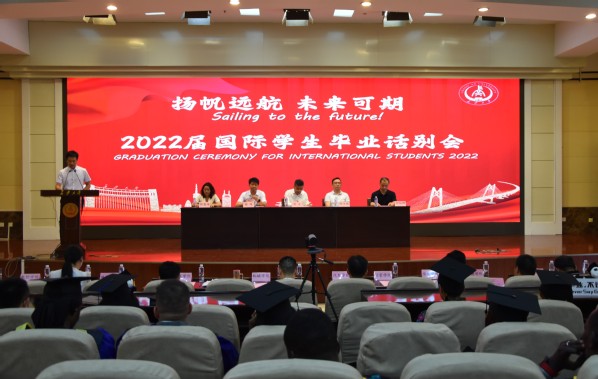2022屆境內外國際畢業生代表、運輸工程學院碩士研究生秦桂及建筑工程學院碩士研究生賽米奧分別發言,衷心感謝母校、學院以及老師們的辛勤培育,表示將心懷感恩、繼續前行,為建設人類命運共同體貢獻力量。