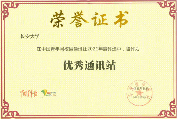 近日,中國青年網2021年度校園通訊社評選活動結果公布。長安大學通訊站被評為2021年度“優秀通訊站”,同時獲評優秀指導教師、優秀通訊員榮譽各一項。