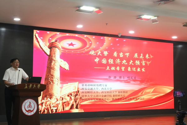 6月24日上午,學校在北校區長安文化藝術中心三樓多功能廳舉辦畢業生形勢政策講座,邀請陜西省委理論講師團特聘專家張鋒博士作《觀大勢、看當下、展未來,中國經濟九大預言——點燃希望,豪邁出發》的主題報告。