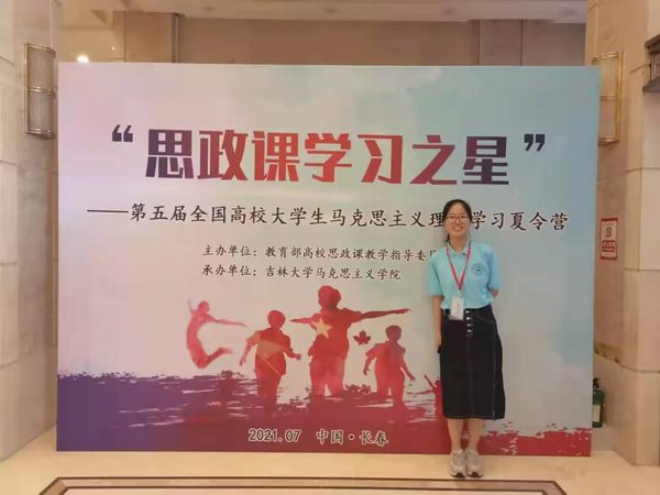 2021年7月19日至23日,在教育部社科司指導(dǎo)下,由教育部高校思政課教學(xué)指導(dǎo)委員會(huì)主辦,吉林大學(xué)馬克思主義學(xué)院承辦的“思政課學(xué)習(xí)之星”——第五屆全國(guó)大學(xué)生馬克思主義理論學(xué)習(xí)夏令營(yíng)成功舉辦。經(jīng)學(xué)校黨委宣傳部以及馬克思主義學(xué)院共同推薦,2019級(jí)本科生胡冰冰順利入圍(全省僅2人)并全程參與了此次活動(dòng)。本次夏令營(yíng)于2021年7月19日開營(yíng),歷時(shí)5天,設(shè)置了4場(chǎng)馬克思主義理論學(xué)習(xí)講座、2堂優(yōu)秀思政課體驗(yàn)、3次情感教學(xué),6次現(xiàn)場(chǎng)教學(xué),1場(chǎng)分組研討、1次主題班會(huì),重溫入黨誓詞,重走抗聯(lián)小路,觀看黨史故事演出。夏令營(yíng)內(nèi)容豐富廣泛、師資力量強(qiáng)大,為培養(yǎng)全面發(fā)展的社會(huì)主義建設(shè)者和接班人奠定了良好基礎(chǔ)。
