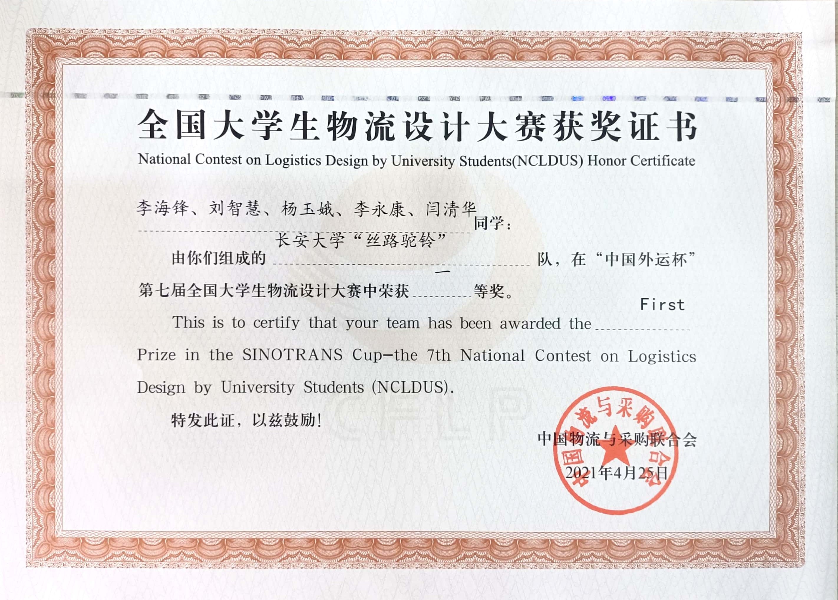 4月22-25日,由中國物流與采購聯(lián)合會主辦,中國外運股份有限公司冠名贊助并提供案例支持的“中國外運杯”第七屆全國大學生物流設計大賽在京舉行。由汽車學院物流工程專業(yè)5名本科生組成的長安大學“絲路駝鈴”隊,從656支參賽隊伍中脫穎而出,成功入圍全國總決賽的90支隊伍。通過現(xiàn)場陳述演示作品、專家提問、隊員現(xiàn)場答辯等環(huán)節(jié),最終榮獲總決賽最高獎一等獎(參賽隊伍的前2.7%)并獲得物流從業(yè)人員職業(yè)能力等級認證證書。指導教師楊京帥、趙博選榮獲優(yōu)秀指導獎。這是長安大學汽車學院物流工程專業(yè)本科生代表學校連續(xù)第七次闖入全國總決賽,第四次獲得全國總決賽最高獎。
