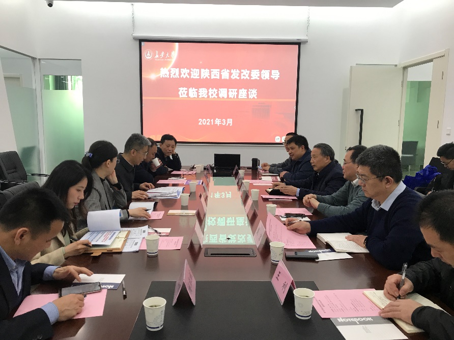 3月5日上午,陜西省發展和改革委員會創新和高技術發展處處長安軍、黃河辦負責人榮朝柱、創新和高技術發展處副處長吳華麗、黃河辦三級主任科員趙一哲來校開展工作調研。