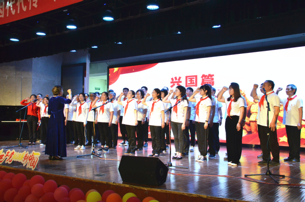 伴隨著幕后花絮視頻的播放,在《沒有共產黨就沒有新中國》的歌聲中,由退休黨支部與學生黨支部分別組成的十個合唱團隊陸續登臺。在“救國篇”“興國篇”“富國篇”“強國篇”四個篇章中,師生們用飽含感情的歌聲唱出了對黨的熱愛與感激;唱出了對祖國對人民的熱愛;唱出了勇擔新時代的歷史使命的豪情。最后,全體師生齊聲合唱《我的祖國》將活動畫下了圓滿的句號。