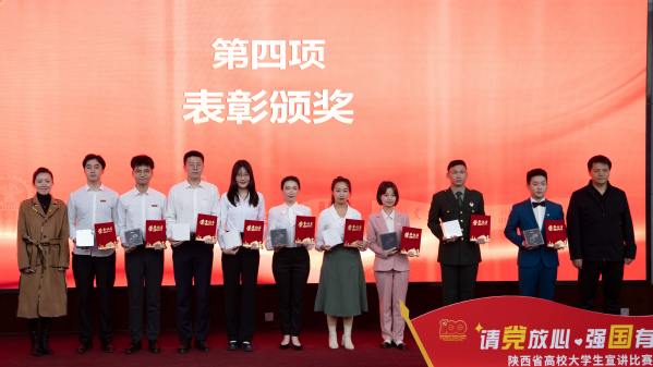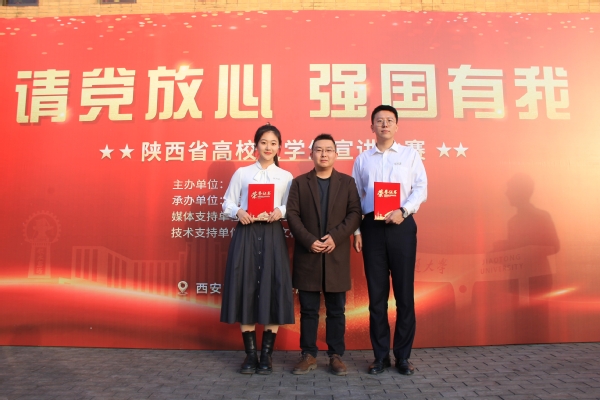 比賽期間,在我校學生葉潤澤的帶領下,來自陜西省各高校的優秀宣講人帶來詩朗誦《青春中國》,充分展現了當代青年學子的昂揚風貌和青春奉獻祖國的情懷。
