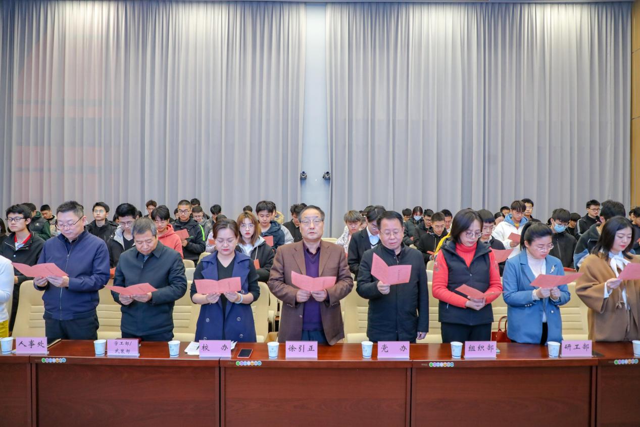 12月3日,教育部舉辦第八屆國家憲法日“憲法晨讀”活動,我校師生在北校區(qū)師生服務(wù)大廳第二報告廳通過網(wǎng)絡(luò)直播線上參與。校黨委副書記徐引正出席活動。徐引正帶領(lǐng)師生跟讀憲法部分條款,在誦讀中加深對憲法的理解,體會憲法溫度,感受憲法的莊嚴(yán)與神圣。