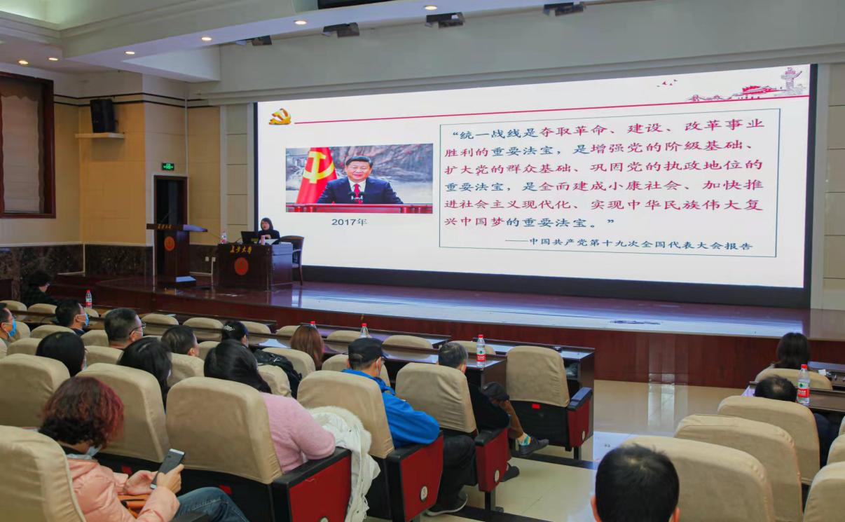 為深入開展“學黨史 跟黨走”主題教育,引導黨外人士學史明理、學史增信、學史崇德、學史力行,11月12日下午,學校在南校區學術交流中心報告廳舉辦同舟講堂第四講,邀請寶雞市委黨校統戰理論研究室候蕊作題為《學習百年統戰史 畫出最大同心圓》的報告。各民主黨派和統戰團體代表、各分黨委統戰委員和黨委秘書,以及統戰部全體工作人員參加了報告會。報告會由統戰部副部長丁珊主持。