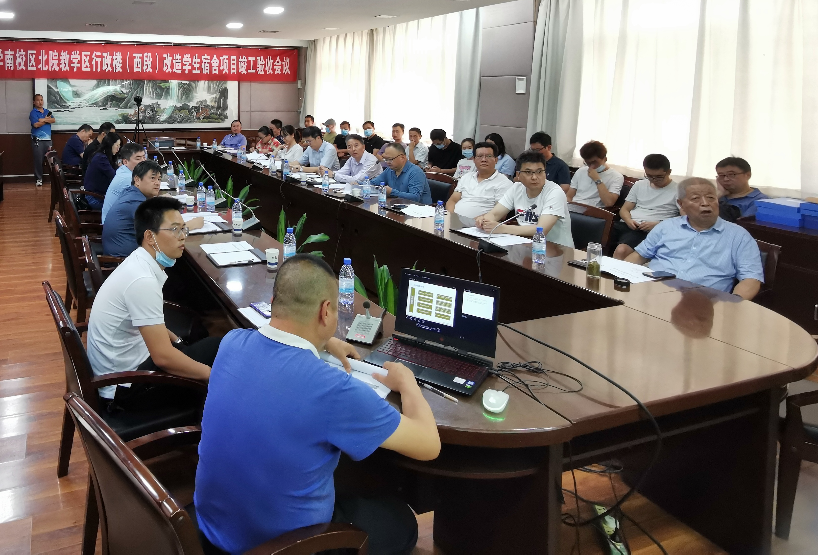 8月26日下午,南校區北院教學區行政樓(西段)改造學生宿舍項目竣工驗收會召開。副校長朱杰君,校辦、學工部、計財處、審計處、國資處、后勤處、保衛處、基建處等相關單位負責人,項目消防、室內空氣質量等檢測單位代表,設計、總承包及監理單位等參建方代表共50余人參加會議。驗收會由基建處副處長孟振江主持。