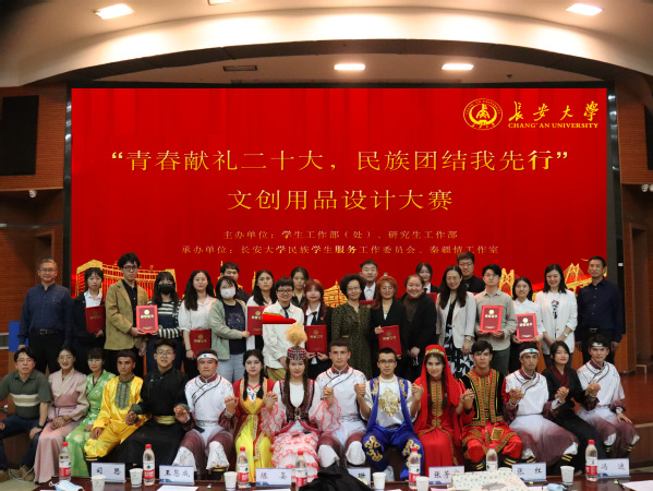 本次比賽由學生工作部、研究生工作部主辦,長安大學民族學生服務工作委員會、秦疆情工作室承辦,旨在以增進共同性為方向,將鑄牢中華民族共同體意識與大學生思想政治教育相結合,加強各民族學生交往交流交融,打造富有時代氣息、民族特色的文化標識。自4月啟動以來,大賽共收到來自15個學院的110余件參賽作品。經過前期選拔,來自公路學院、機械學院、經管學院、建筑學院、人文學院、理學院、外語學院的十四支團隊入圍決賽。比賽過程中,各參賽隊伍從作品的創作背景、創作過程、功能使用、寓意象征等方面進行了陳述。