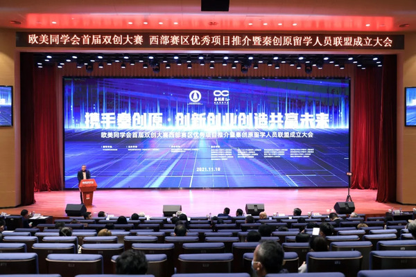 會上還舉行了歐美同學會首屆雙創大賽西部賽區優秀項目推介和留學人員創業項目投資意向集中簽約儀式。大會結束后參會人員集體參觀了秦創原綜合服務中心。