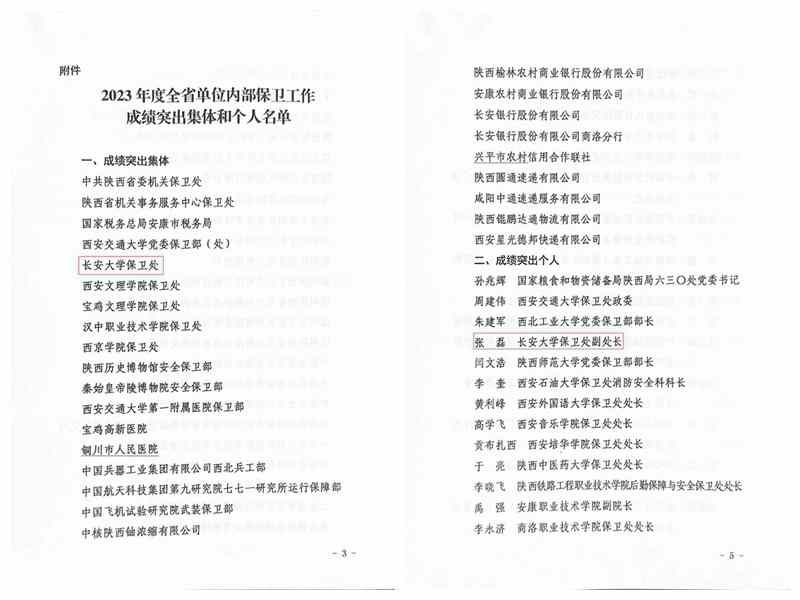 近日,陜西省公安廳印發《關于對2023年度全省單位內部保衛工作成績突出集體和個人予以表揚的通報》,我校保衛處(保衛工作部)榮獲“成績突出集體”稱號、保衛處(保衛工作部)副處長張磊榮獲“成績突出個人”稱號。