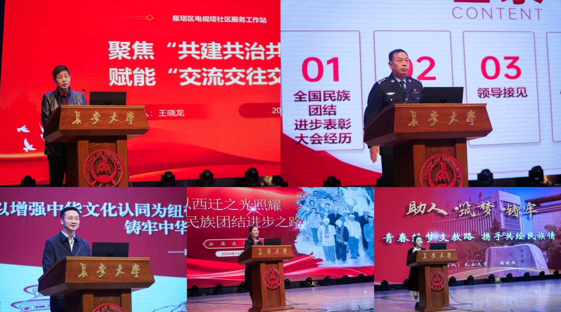 11月16日下午,“講好中華民族故事,共創民族復興偉業”第二屆陜西省高校大學生鑄牢中華民族共同體意識主題微宣講比賽頒獎典禮暨首場宣講報告會在北校區長安文化藝術中心舉行。省民宗委副主任王曉斐、校黨委副書記黎開誼、省民宗委民族一處處長張巖松、省委統戰部民族宗教處副處長張鑫、省委教育工委統戰部副部長白瑩、省民宗委民族一處一級調研員孟旭紅出席大會。