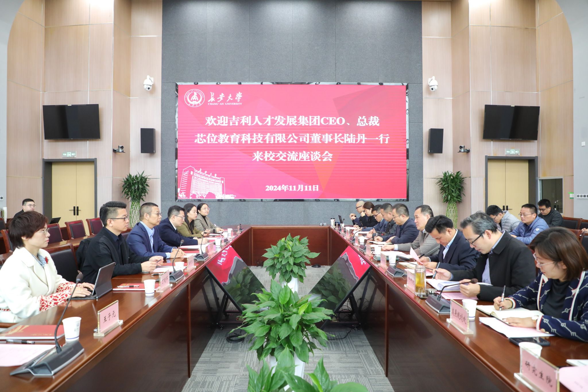 陸丹對學校的熱情接待表示感謝,從規模體量、組織架構、業務布局等方面介紹了吉利人才發展集團的發展情況。陸丹表示,長安大學的學科專業實力及人才培養成效在行業內享有盛譽,希望雙方發揮校企合作優勢,在產教融合、國際化辦學及數字教育等方面深度合作、雙向賦能,共同助力教育事業蓬勃發展。
