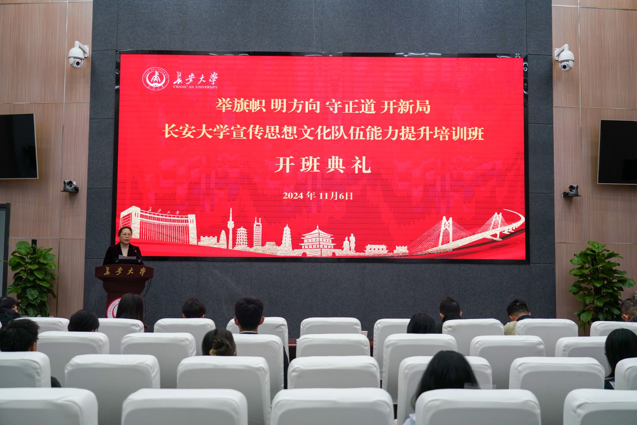 為深入學習貫徹習近平文化思想,推動學校宣傳思想文化工作高質量發展,11月6日至7日,長安大學2024年“舉旗幟 明方向 守正道 開新局”宣傳思想文化隊伍能力提升培訓班在北校區舉行。校黨委副書記、副校長彪曉紅出席開班典禮并作動員講話。各分黨委、黨總支,校屬各單位新聞宣傳聯絡員參加培訓。開班典禮由黨委宣傳部常務副部長郗波主持。