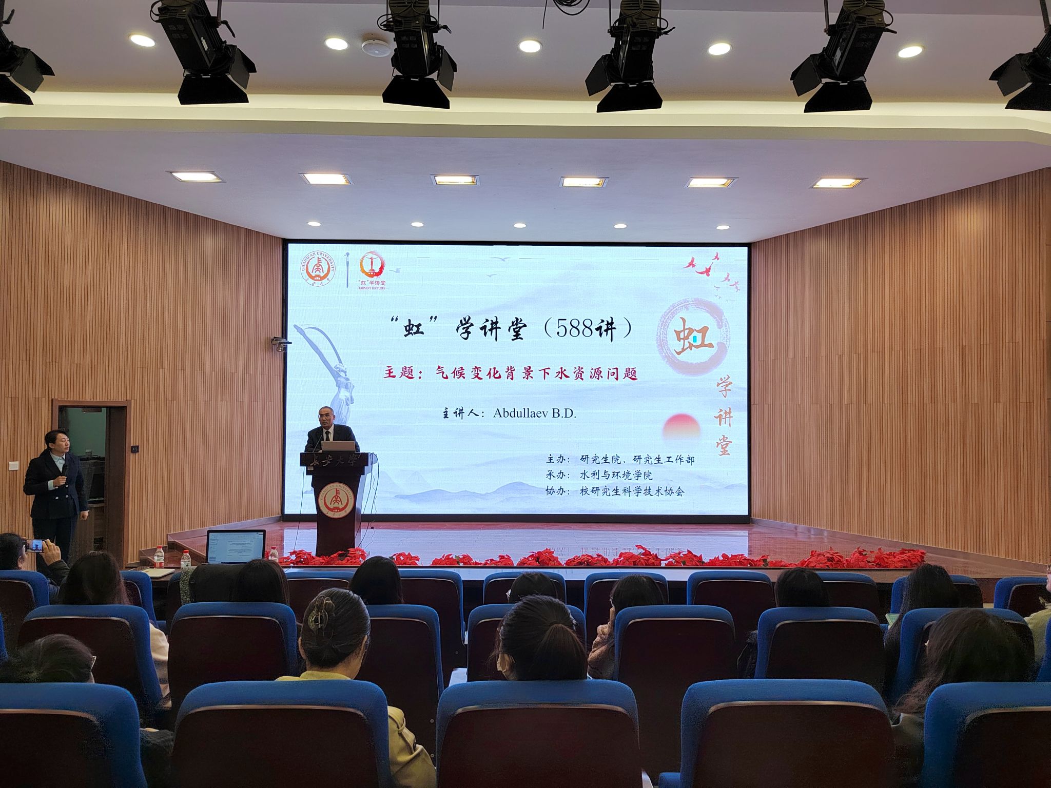 在校訪問期間,Abdullaev B.D. 院士分別以“利用現代技術改進烏茲別克斯坦共和國地下水監測工作”“跨界含水層地下水資源管理”“地下水污染問題的解決方法和技術”“氣候變化背景下水資源問題”為題為我校師生作了學術報告。Abdullaev B.D. 院士還參觀了我校李佩成院士特藏館。