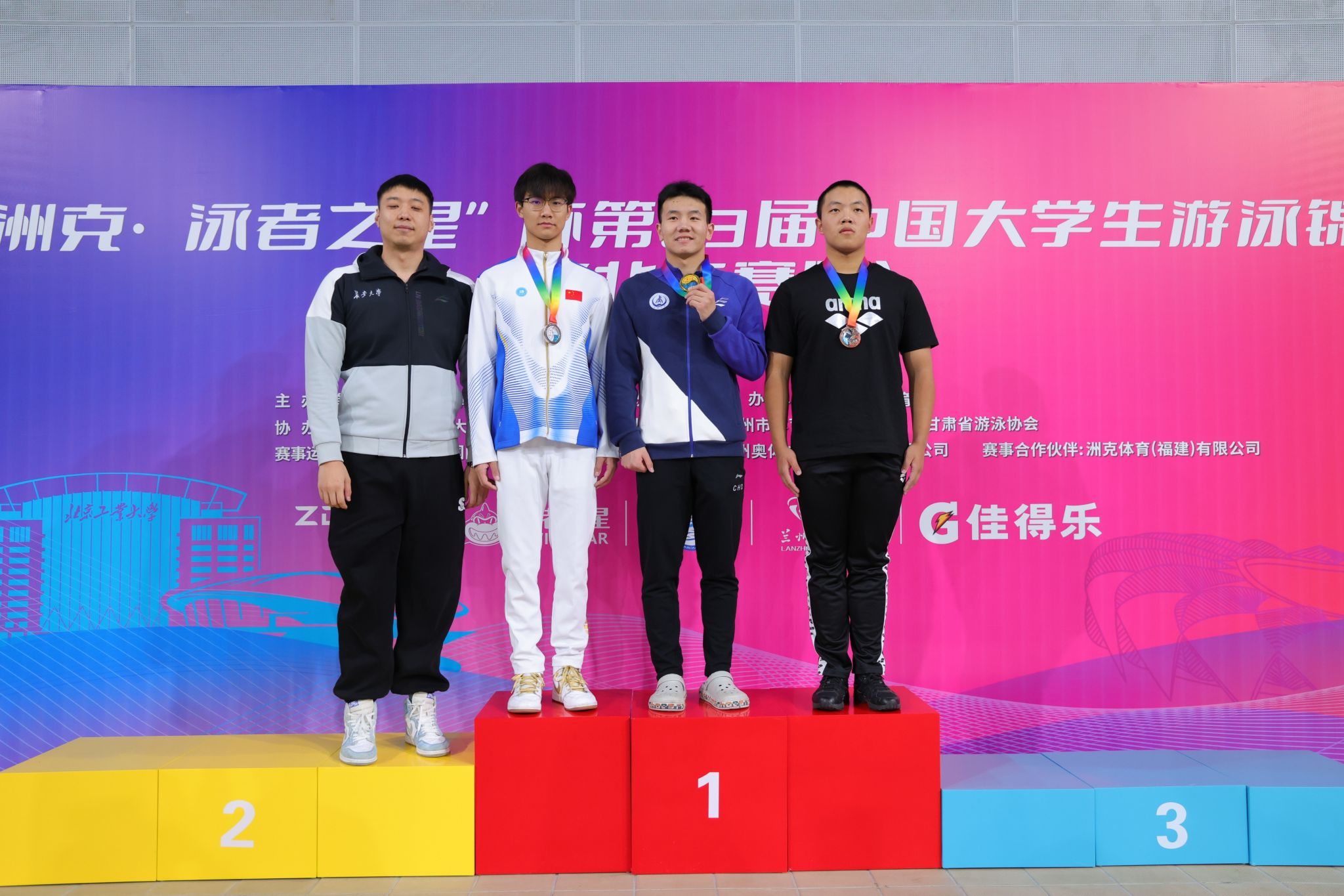 10月23日至26日,第23屆中國大學(xué)生游泳錦標賽(北方賽區(qū))在甘肅省蘭州市奧體中心舉行。我校代表隊獲得男子單項甲組200米自由泳冠軍、400米自由泳冠軍的優(yōu)異成績,這是我校代表隊首次出征全國性游泳賽事。