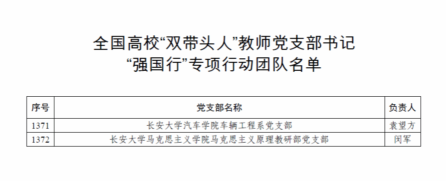 近日,教育部辦公廳公布了全國高校“雙帶頭人”教師黨支部書記“強國行”專項行動團隊名單,我校汽車學院車輛工程系黨支部、馬克思主義學院馬克思主義原理教研部黨支部成功入選。