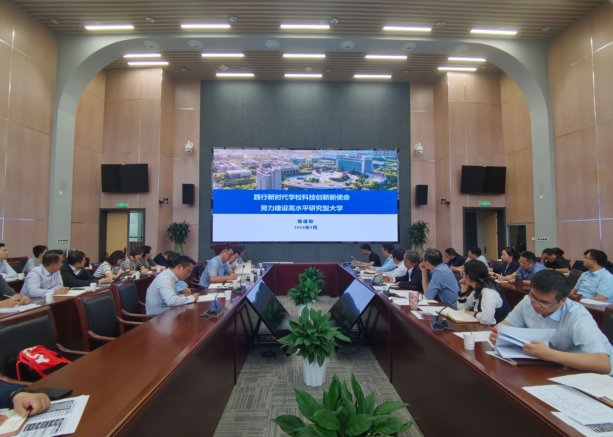 陳建勛肯定了上半年科研工作進展,以“踐行新時代學校科技創新新使命,努力建設高水平研究型大學”為主題,強調要充分認識科技創新對國家發展的重要作用,指出高水平研究型大學是國家戰略科技力量的重要組成部分,針對學校科研發展面臨的突出問題,提出具體工作要求:一是聚焦國家重大戰略需求和行業發展需求,對標高水平研究型大學的要求,充分發揮學校在國家科技自立自強體系中的支撐作用;二是持續深化科研體制機制改革,加強科研誠信建設,提升教師基礎研究能力,實現科研管理資源有效整合與工作效能全面提升;三是統籌有組織科研工作,搶抓機遇,加快推進完成2024年度科研工作目標任務,不斷強化科研人員科技報國、服務需求的責任擔當。