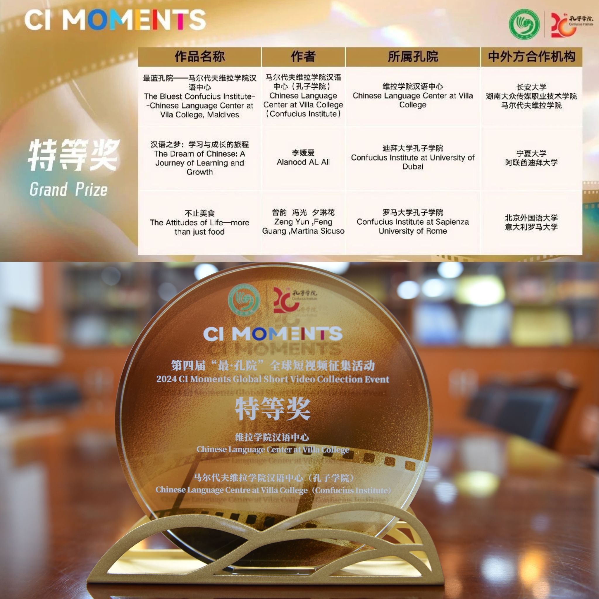 我校馬爾代夫維拉學院漢語中心榮獲第四屆“最·孔院”全球短視頻征集活動特等獎