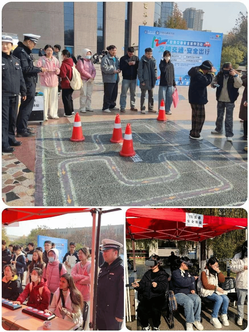 現場活動設置了VR交通安全體驗、交通安全知識競賽、交通安全網紅打卡拍照點、醉酒行走體驗四項內容。通過這些師生喜聞樂見的趣味活動,引導大家了解更多交通安全知識,警醒破除麻痹大意思想,建立良好交通意識觀念。