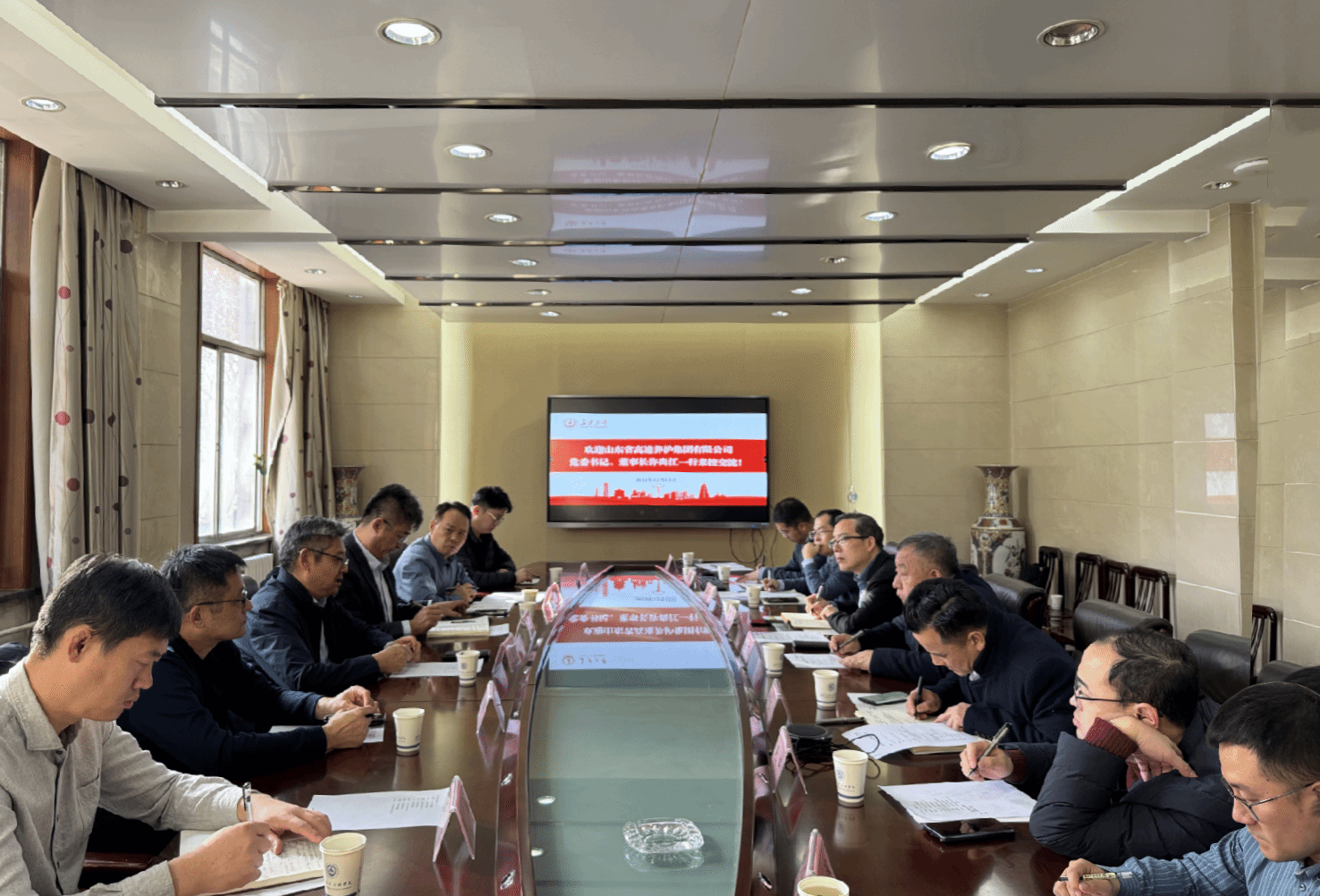 12月13日下午,山東省高速養護集團有限公司黨委書記、董事長許尚江一行7人來校調研交流,副校長陳建勛出席座談會,會議由科學研究院副院長姚以亮主持。
