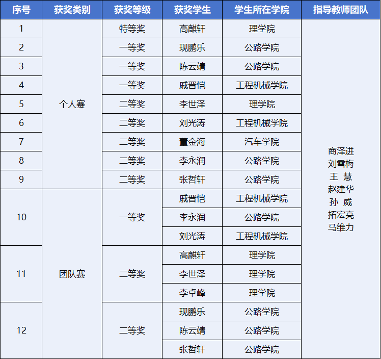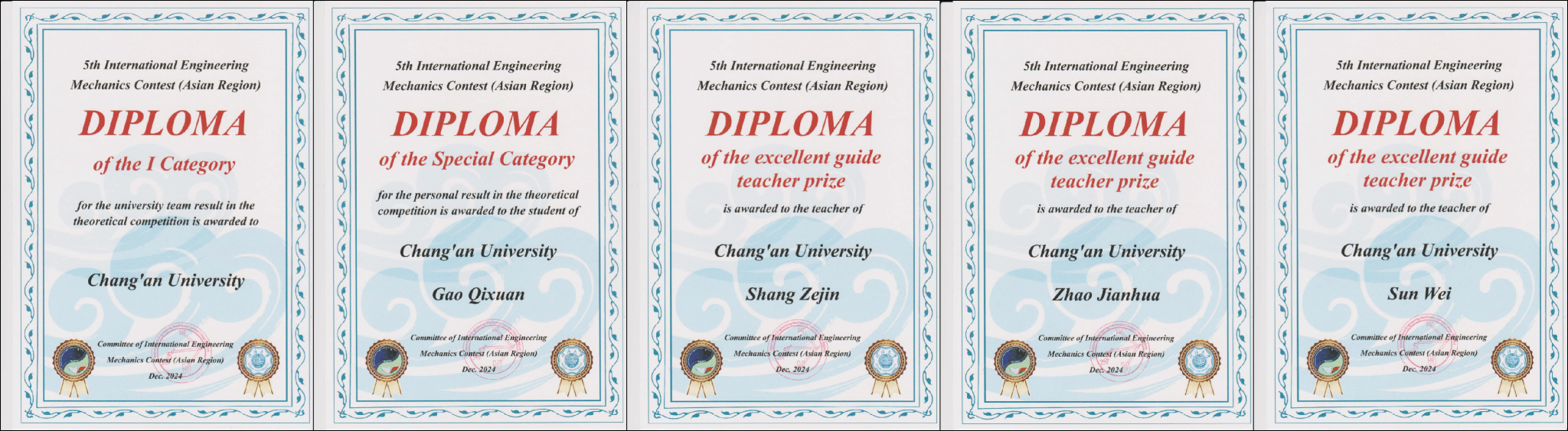 近日,第五屆國際大學(xué)生工程力學(xué)競賽(亞洲賽區(qū))在河海大學(xué)江寧校區(qū)舉辦。我校選派的3位老師和12名學(xué)生組成的參賽團(tuán)隊(duì),在決賽中斬獲個(gè)人賽特等獎(jiǎng)1項(xiàng)、一等獎(jiǎng)3項(xiàng)、二等獎(jiǎng)5項(xiàng),團(tuán)隊(duì)賽一等獎(jiǎng)1項(xiàng)、二等獎(jiǎng)2項(xiàng)。其中,理學(xué)院工程力學(xué)專業(yè)高麒軒同學(xué)個(gè)人賽成績突出,榮獲第八名,位列西部地區(qū)所有參賽高校選手第一名,取得我校參加該賽事個(gè)人賽歷史最好成績。長安大學(xué)代表隊(duì)榮獲團(tuán)體一等獎(jiǎng),實(shí)現(xiàn)該賽事團(tuán)體成績新突破。商澤進(jìn)、趙建華和孫威三位老師榮獲優(yōu)秀指導(dǎo)教師。