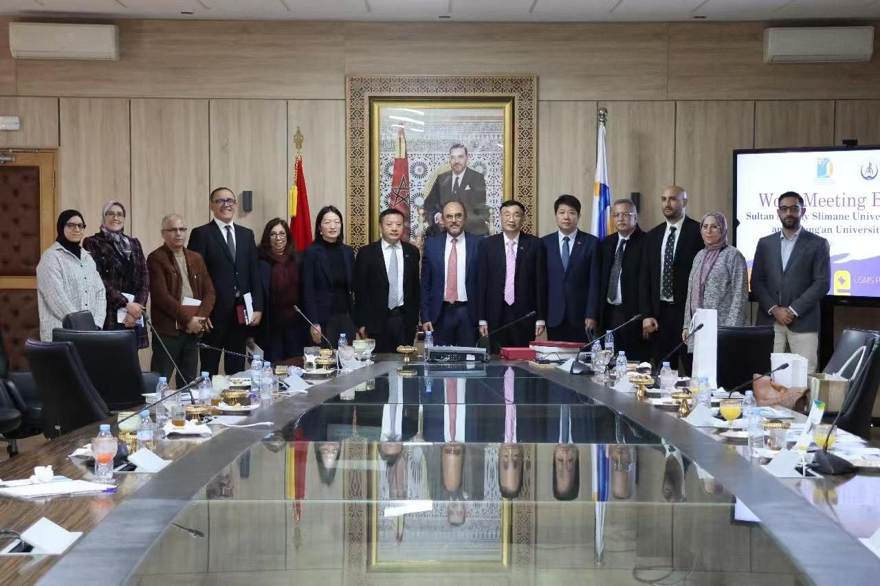 在摩洛哥訪問期間,代表團拜會了駐摩洛哥大使李昌林,并先后與摩洛哥蘇丹穆雷·斯利曼大學校長Khalid Mehdi及相關學院院長、哈桑二世大學孔子學院中方院長鄭瓊、摩洛哥FW留學中心首席執行官Abdelhaq BOUKHALF會談。在與蘇丹穆雷·斯利曼大學的座談中,雙方表示希望從促進土木工程、人工智能等領域科技創新與技術轉移、加強雙方青年學者培訓與交流、推動雙方碩博士高水平學生交流、促進中摩科技合作國際化發展、建立聯合實驗室與研發中心等五個方面探索開展合作,并簽署了戰略合作協議。期間,代表團還與中鐵二十局摩洛哥子公司總經理胡廣華、中國路橋摩洛哥子公司總經理嚴斌就校企合作相關領域工作展開討論。