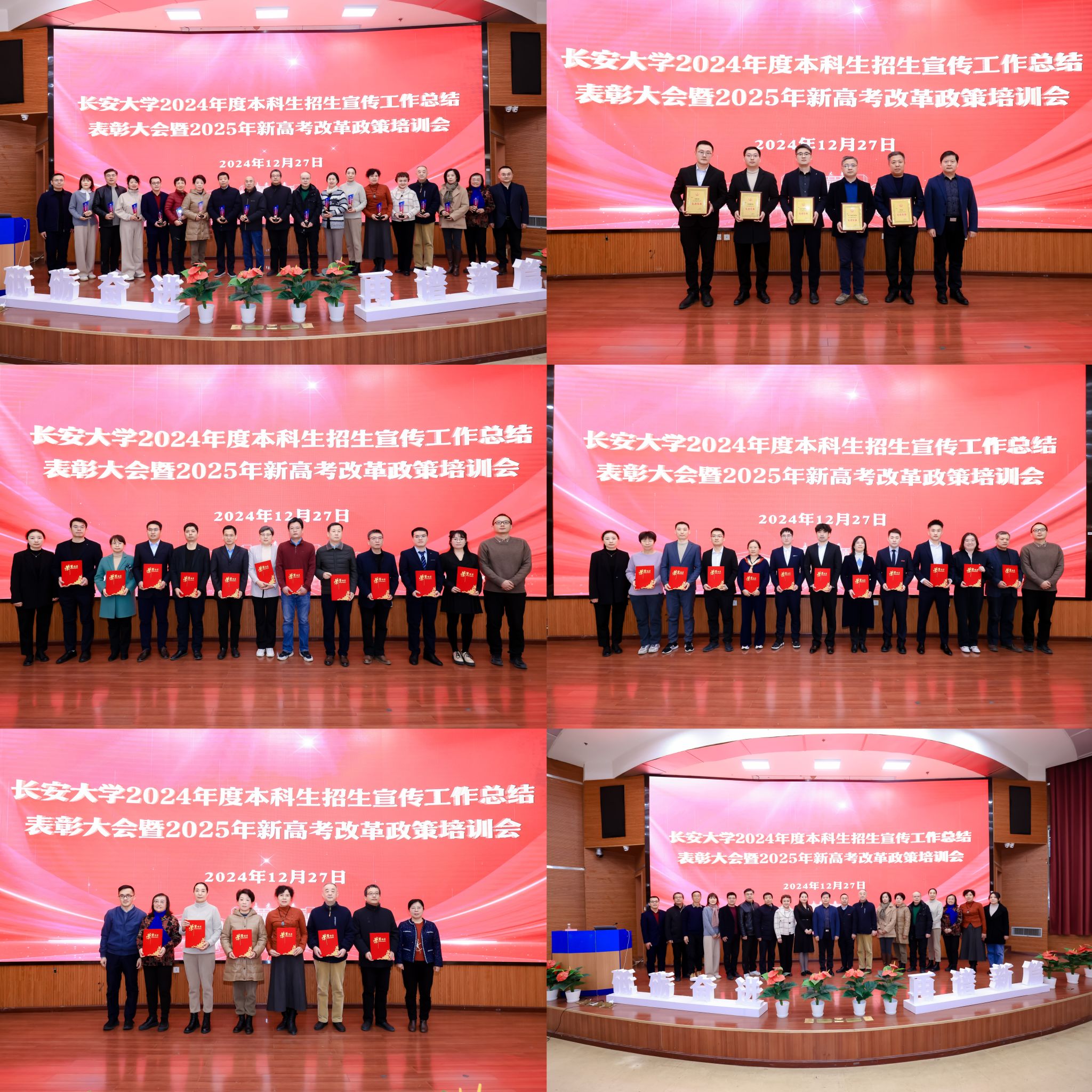12月27日下午,學校在北校區圖書館西側裙樓報告廳舉辦長安大學2024年度本科生招生宣傳工作總結表彰大會暨2025年新高考改革政策培訓會。校黨委副書記黎開誼出席大會。會議由招生就業處處長鄧紅章主持。