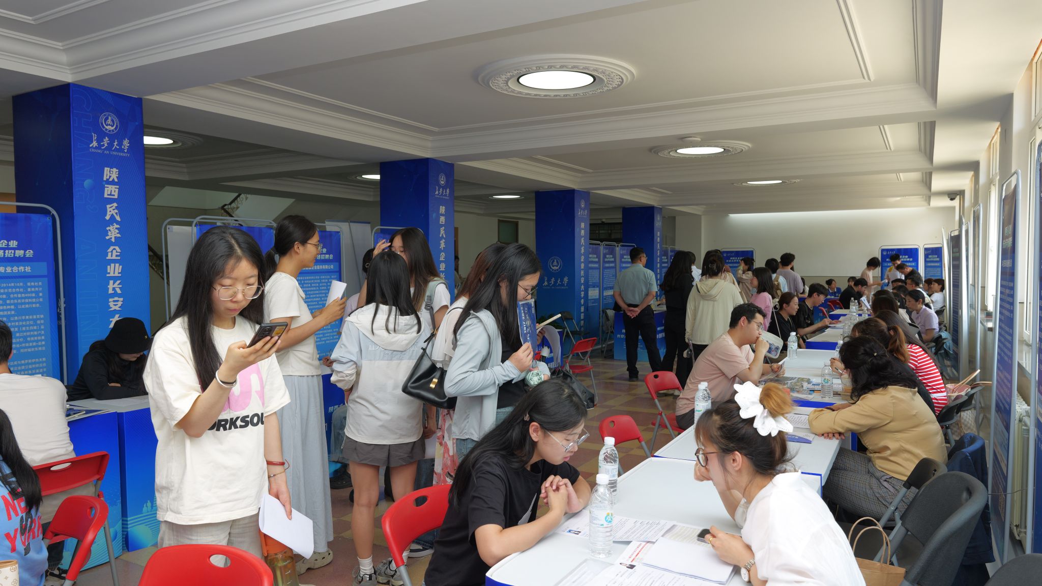 在陜西民革企業長安大學專場招聘會上,近30家陜西民革企業提供了約300個就業崗位,600余名學生應聘求職。