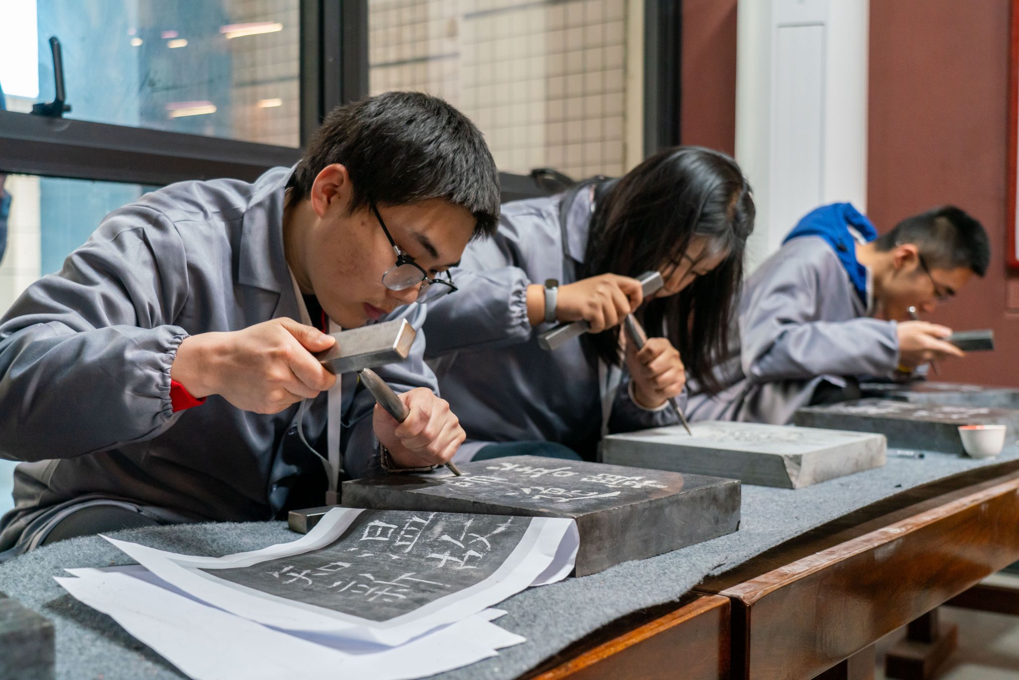 儀式結(jié)束后,嘉賓和師生們?cè)趯W(xué)生講解員的引導(dǎo)下,一同參觀了石刻藝術(shù)館?,F(xiàn)場(chǎng)還開展了拓片、刻字等學(xué)生實(shí)踐活動(dòng),學(xué)生們現(xiàn)場(chǎng)體驗(yàn)了傳統(tǒng)碑刻的藝術(shù)魅力。