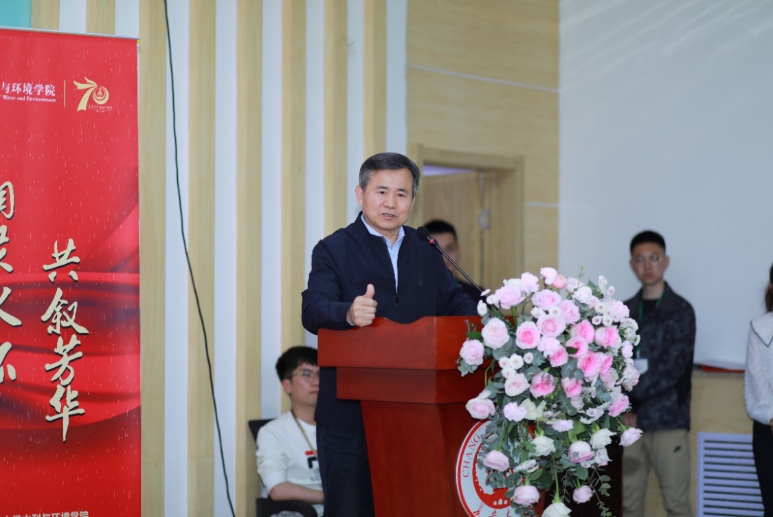 學院黨委書記鄧紅章致歡迎辭,對返校參加長安大學七十年校慶活動的院友們表示熱烈歡迎,向多年來關心、支持學院發展的院友們致以誠摯的問候和衷心的感謝。他介紹了學院在學科建設、人才培養、師資隊伍和社會服務等方面的發展歷程和近年來取得的主要成就,他表示,在所有水環人的共同努力下,學院一定能夠在新時代、新起點上取得新的更輝煌的成績。