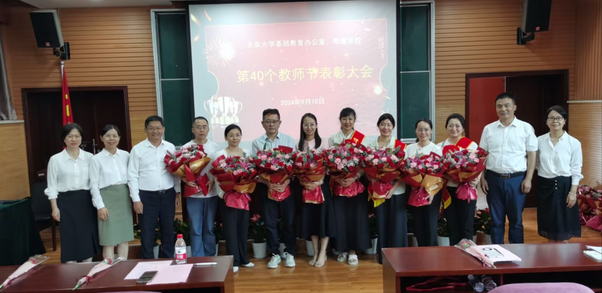 基礎教育辦公室副主任、附屬學校副校長諶亞芳宣讀表彰決定,優秀教師代表王曉珍發表感言。圍繞“大力弘揚教育家精神,加快建設教育強國”這一教師節主題,大會隆重表彰了一學年來,各學段、各部門涌現出的9名優秀教師、優秀教育工作者,2024年陜西省教科文衛體系統“五一巾幗標兵”獲得者及2024年度長安大學“黨員先鋒崗”獲得者等。