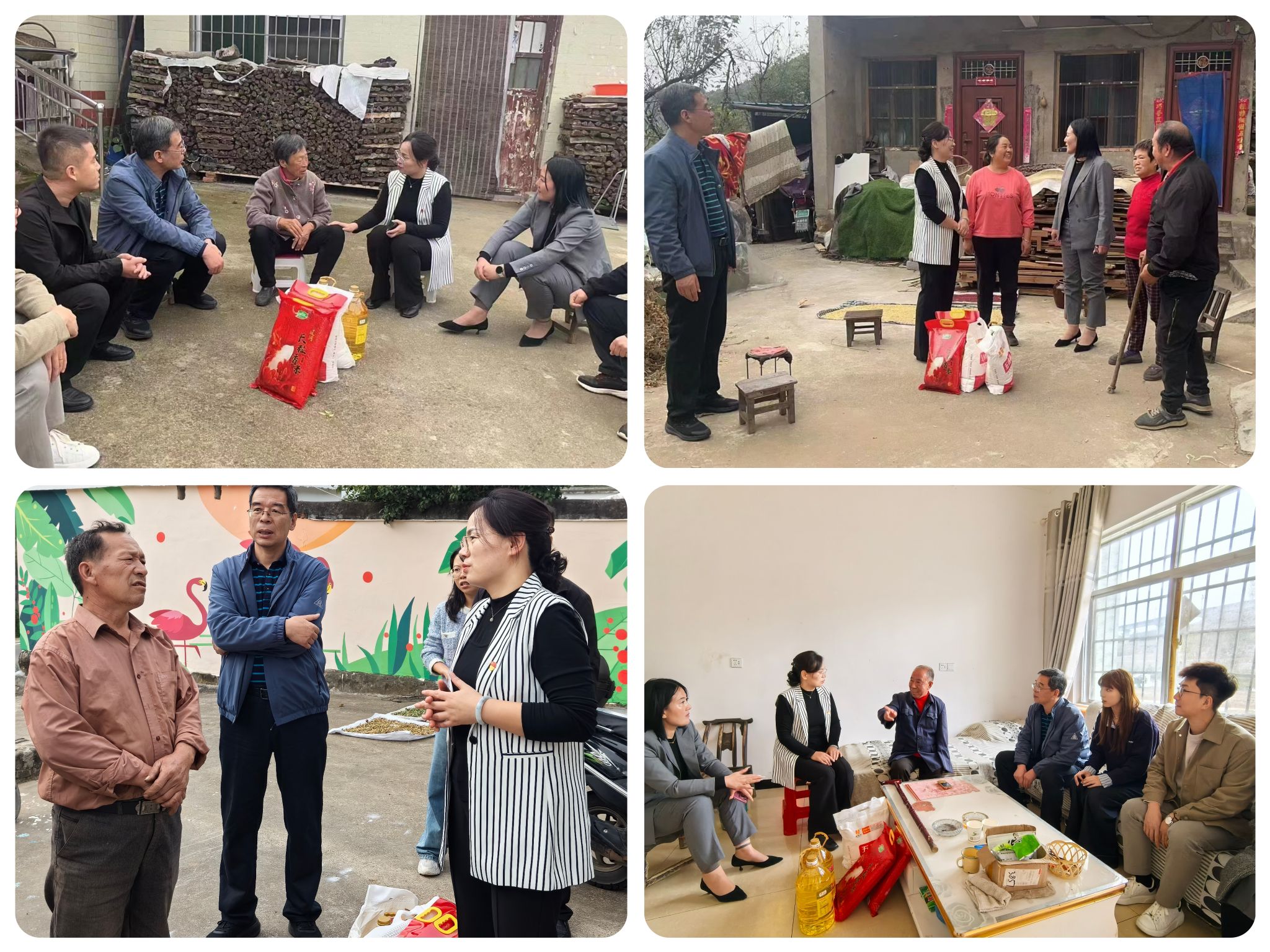座談會后,何紅娟一行深入5戶貧困戶家中走訪慰問,鼓勵他們樹立信心,積極面對生活挑戰,并為他們送去了米面油等慰問品。青年教師們還結合實際情況,為貧困戶提出了切實可行的幫扶建議,助力他們早日脫貧致富。