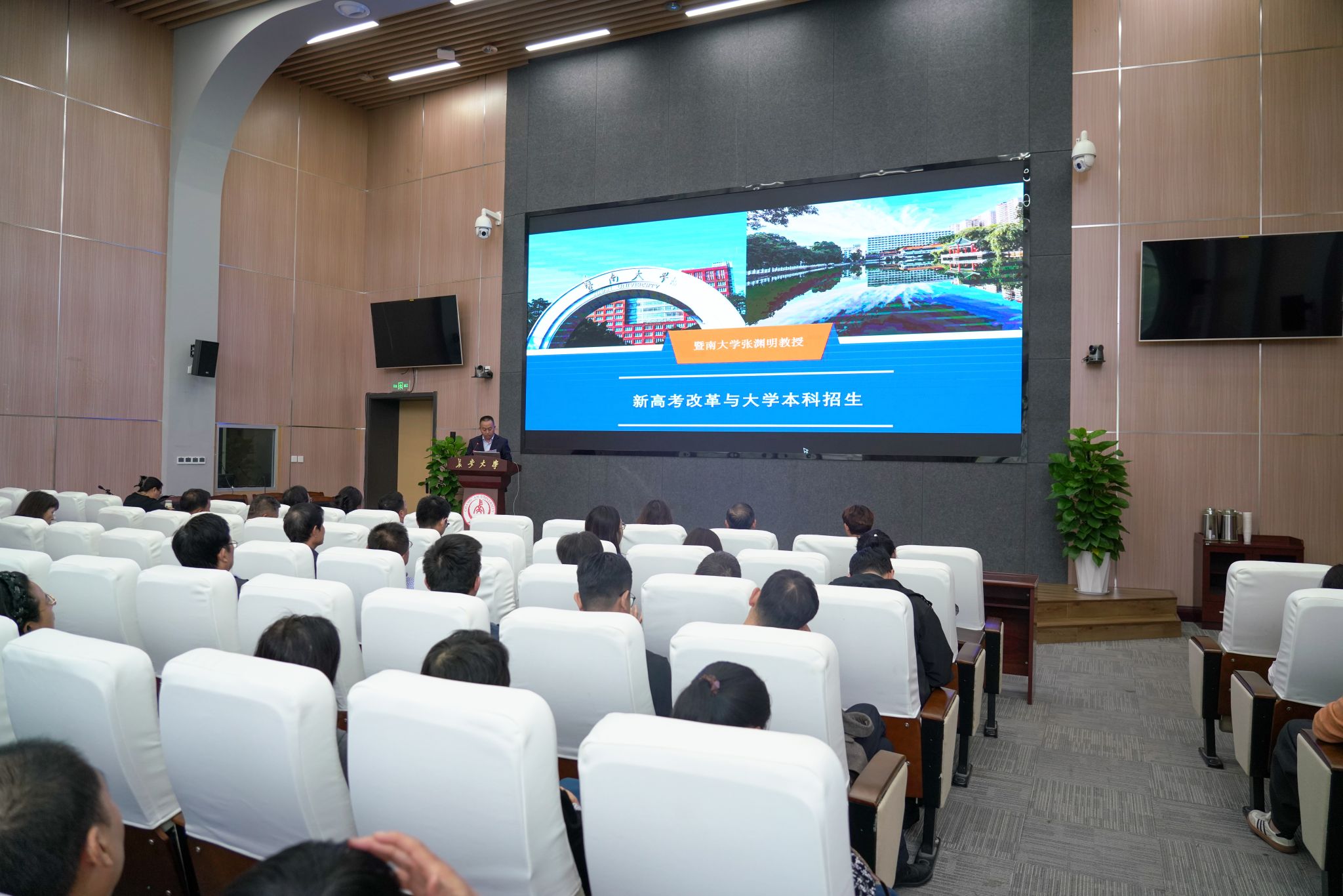 講座由暨南大學教授、博士生導師張淵明老師主講。他從新高考改革政策概述、新高考下的機遇和挑戰(zhàn)、新高考下的招生宣傳工作三個方面分享了在中國高考綜合改革、高校學科專業(yè)優(yōu)化、專業(yè)組設置、高校招生策略、高中生生涯規(guī)劃與選科指導等方面的多年研究經(jīng)驗,對2024年全國和陜西省高招數(shù)據(jù)進行了復盤,深入分析了各省新高考改革政策內(nèi)涵和現(xiàn)狀。針對長安大學實際情況,張淵明教授援引其他兄弟高校、高考綜合改革省份高校和同行業(yè)院校的多重應對案例,對學校2025年本科招生專業(yè)組設置、考生志愿填報策略、招生宣傳成效提升進行了精準的指導,對招生工作的提升提出了中肯的建議。