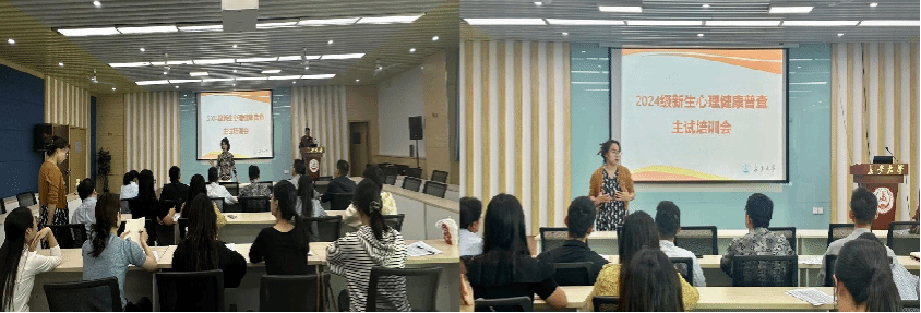 為確保2024級全體新生心理健康測評工作精準高效開展,10月10日、10月11日,心理健康教育與咨詢中心分別在南北校區舉辦兩場心理健康普查主試培訓會,各院(系)學辦主任、全體新生輔導員、心理中心專任教師參加培訓。