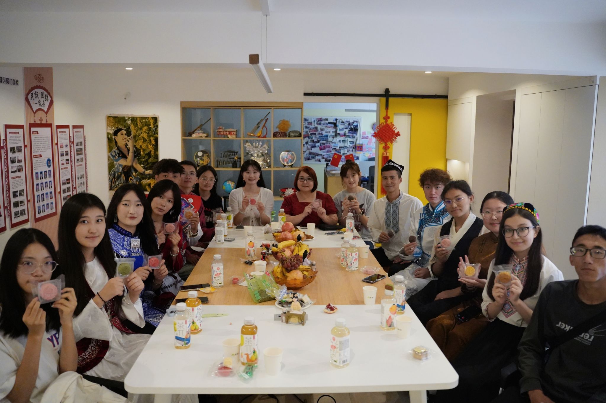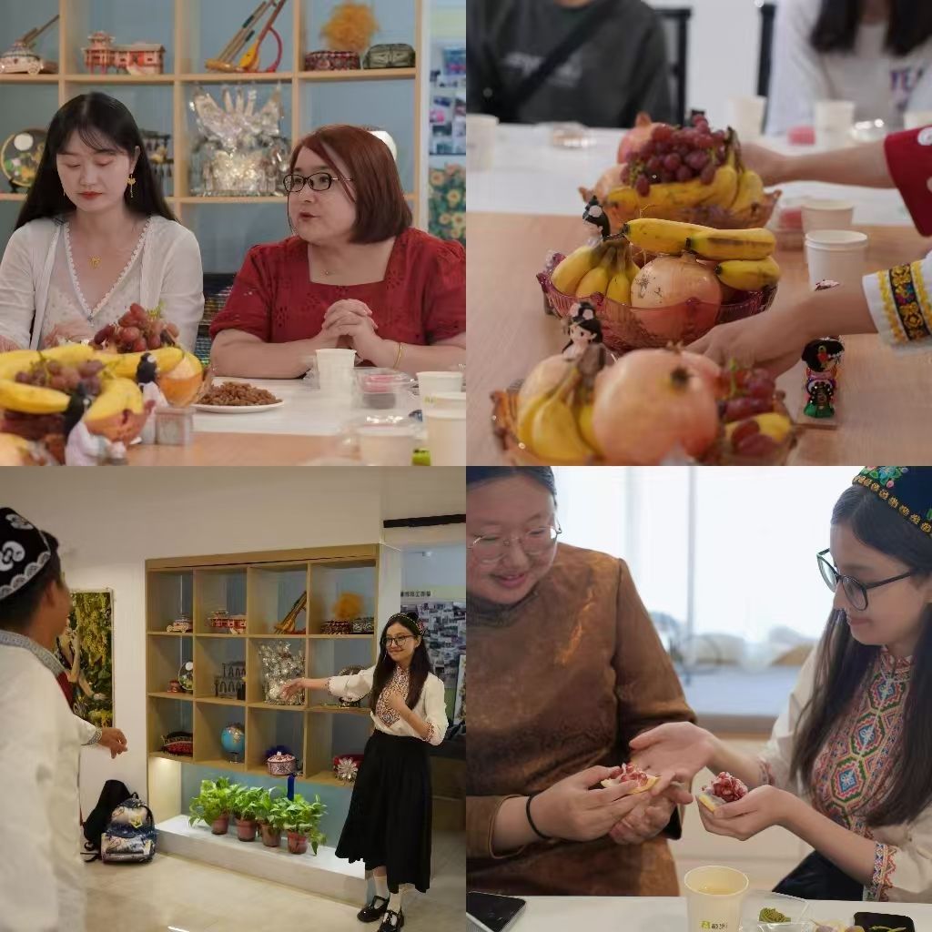 窗外陽光正好,屋內(nèi)瓜果飄香,身著維吾爾族、錫伯族、苗族等各民族特色服飾的同學(xué)們齊聚秦疆情,暢談家鄉(xiāng)的中秋盛景和特色民俗,共同品嘗長安大學(xué)定制月餅,維吾爾族、哈薩克族姑娘的舞蹈更是將現(xiàn)場氣氛推向高潮,各具特色的民族文化與傳統(tǒng)中秋佳節(jié)的團(tuán)圓溫情在此刻完美融合。