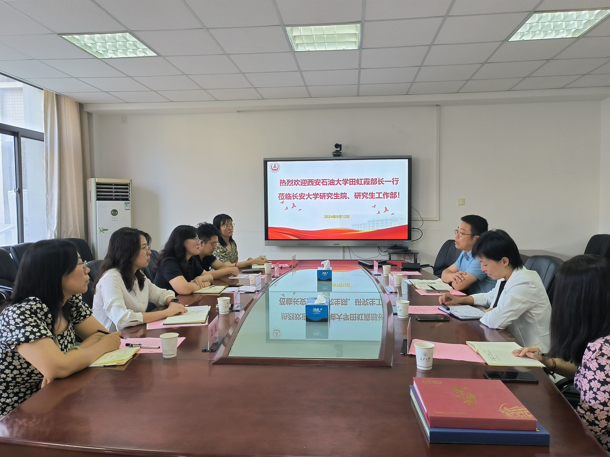 田虹霞對我校在研究生思想政治教育工作的政策、舉措及成果等給予了充分肯定,并對西安石油大學的研究生思想政治教育工作開展情況進行了介紹,希望能借此機會學習借鑒長安大學在研究生思想政治教育方面的先進經(jīng)驗與做法,推動本校研究生教育質(zhì)量的進一步提升。