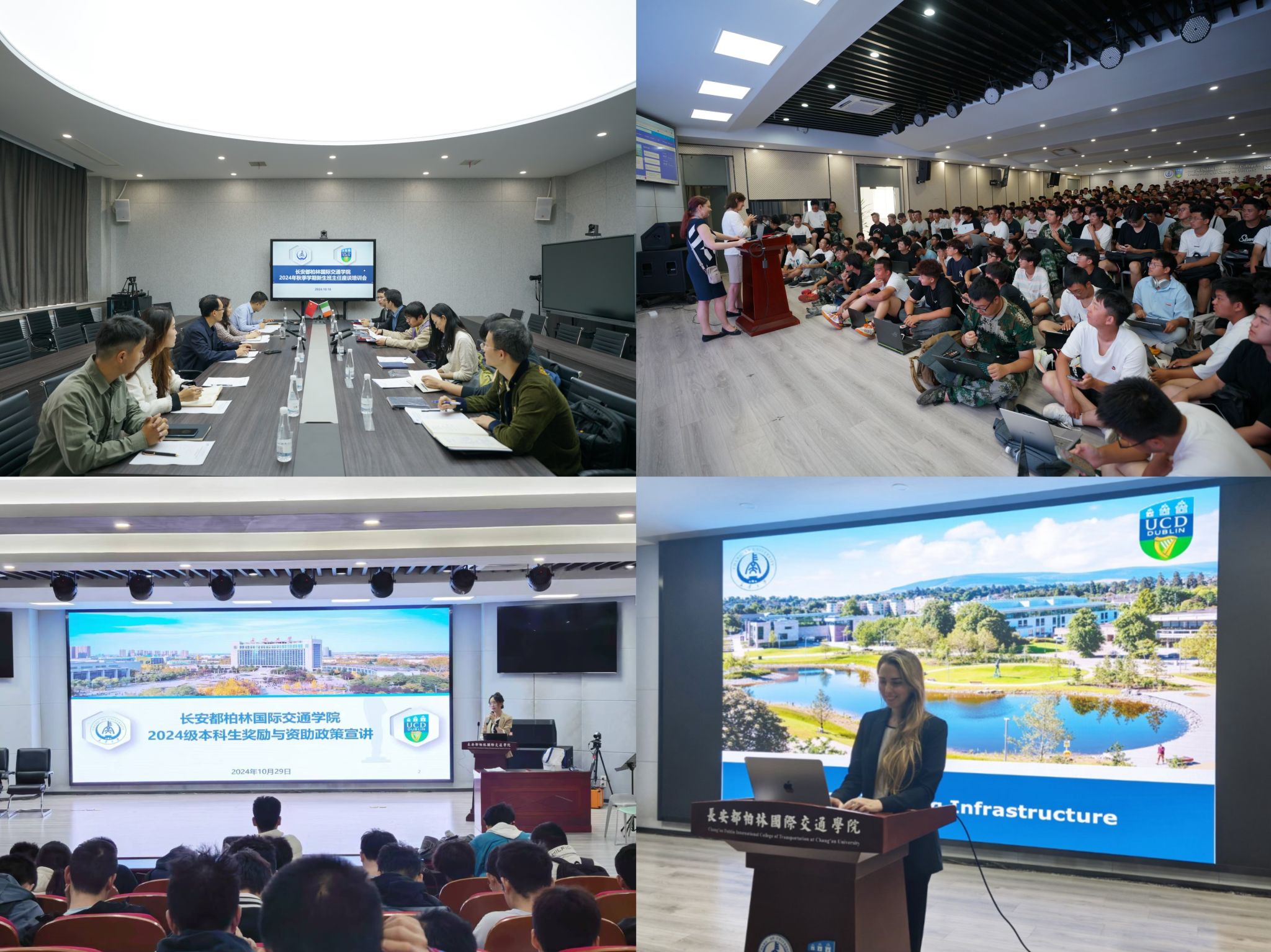 協(xié)同育人促成長,接好服務(wù)“地線”。學院著力深化“專業(yè)教師-班主任-輔導員”聯(lián)動網(wǎng),積極構(gòu)建家校教育共同體,召開新生家長見面會、中外英語語言教師、專業(yè)任課教師座談會、都柏林大學學籍注冊說明會,為新生順利入校保駕護航;邀請中外雙方專業(yè)負責人、專業(yè)課教師舉辦“國交講堂”各專業(yè)系列講座10場,介紹學科發(fā)展前沿,開展學科與專業(yè)認知教育,增強新生的專業(yè)認同感與歸屬感;高度重視、精心組織新生班主任選聘工作,召開2024-2025學年新生班主任培訓座談會,加強新生班主任的培訓、指導、服務(wù)、管理和考核,推進班主任工作制度化、規(guī)范化、科學化;輔導員利用晚點名、周見面、班會等,深入開展學生日常管理制度培訓、人際關(guān)系與大學生活適應(yīng)、獎勵與資助政策宣介、自我認知與生涯規(guī)劃等適應(yīng)性教育,全方位、多層次教育引導新生適應(yīng)大學生活,為未來發(fā)展奠定堅實的基礎(chǔ)。