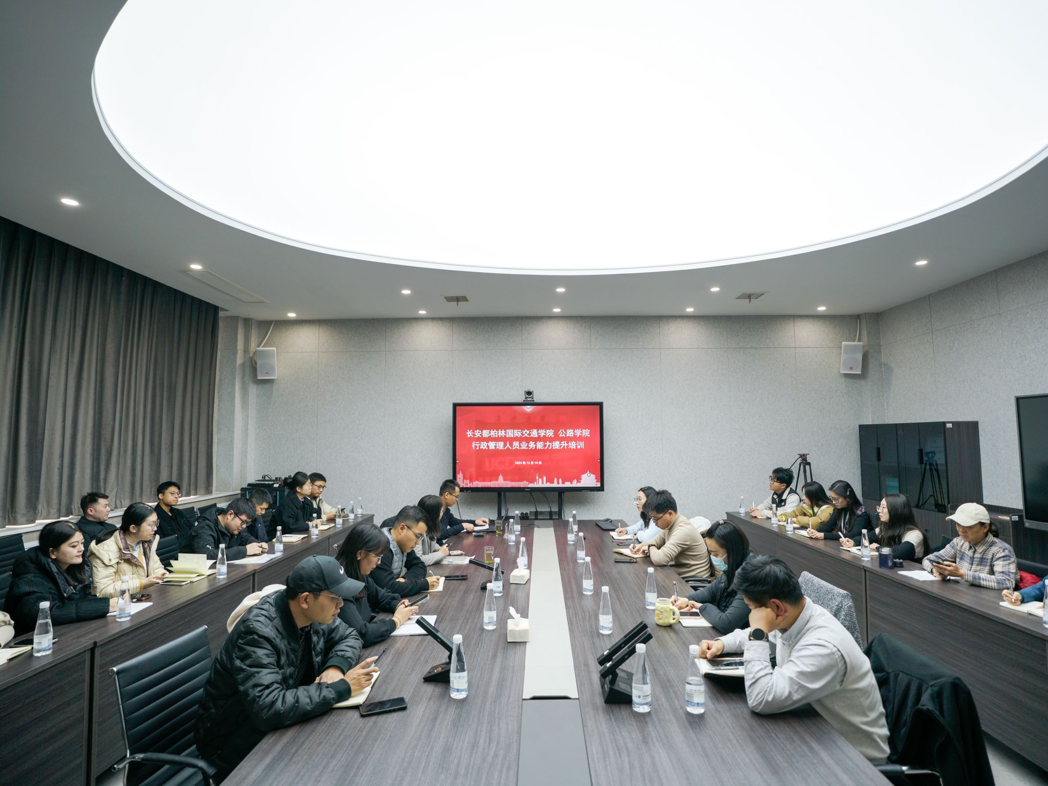 為進一步提升學院行政管理人員的業務能力和綜合素質,12月10日下午,學院聯合公路學院在鴻遠教學樓四層會議室開展行政管理人員業務能力提升培訓。本次培訓活動特邀學校思創中心主任武永江,公路學院黨委副書記、副院長劉偉做專題講座。學院黨總支副書記張艷萍、長安都柏林國際交通學院和公路學院行政管理人員參加培訓。培訓會由副院長賀燕飛主持。