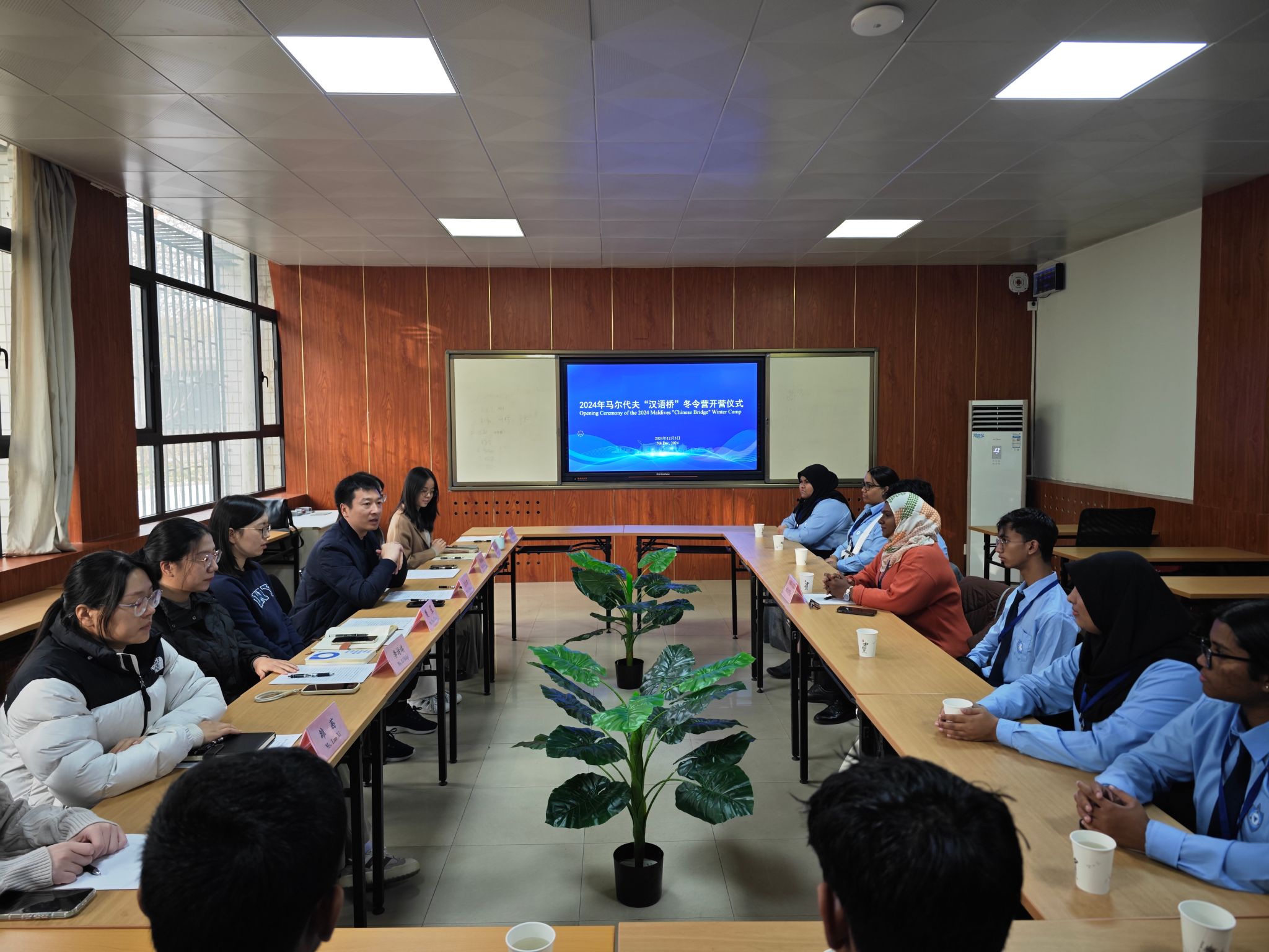 12月5日,由長安大學國際教育學院承辦的“馬爾代夫‘漢語橋’冬令營”開營儀式舉行。該項目主要面向馬爾代夫中文及中國文化愛好者,旨在增進馬爾代夫學生對中國語言與文化的了解,為兩國友好關系發展搭建橋梁,此次冬令營學員均來自馬爾代夫維拉國際高中。長安大學國際教育學院副院長呂衛東出席開營儀式并致辭。馬爾代夫維拉國際高中教師代表AMINATH SHAFFA、長安大學國際教育學院教師代表及冬令營全體學員參加開營儀式。