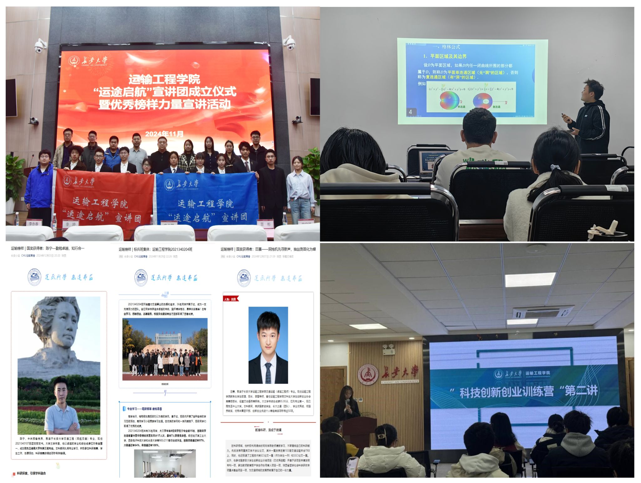 強(qiáng)化榜樣示范,營(yíng)造爭(zhēng)先創(chuàng)優(yōu)濃厚氛圍。學(xué)院成立“運(yùn)途啟航”宣講團(tuán),召開(kāi)多場(chǎng)宣講活動(dòng)向?qū)W生傳授學(xué)習(xí)經(jīng)驗(yàn)。選聘12名班級(jí)朋輩導(dǎo)師和90多名幫扶志愿者,共開(kāi)展32場(chǎng)課程答疑和幫扶活動(dòng),覆蓋700多人次。依托學(xué)院官微“CHU運(yùn)載青春”微信公眾號(hào)等新媒體進(jìn)行宣傳,設(shè)立“運(yùn)輸榜樣”“優(yōu)秀青年”等欄目線上宣傳優(yōu)秀榜樣事跡。學(xué)院“科創(chuàng)能力提升訓(xùn)練營(yíng)”定期舉辦講座,幫助100多名學(xué)生提升文獻(xiàn)閱讀、數(shù)據(jù)分析和寫(xiě)作能力。學(xué)院充分發(fā)揮黨員的先鋒模范作用,舉辦“先鋒說(shuō)”沙龍,12名學(xué)生黨員分享了大學(xué)的成長(zhǎng)經(jīng)歷。組織開(kāi)展英語(yǔ)四六級(jí)模擬考、高數(shù)和考研數(shù)學(xué)講座等活動(dòng),共有200多名學(xué)生參加。通過(guò)加強(qiáng)班風(fēng)建設(shè)營(yíng)造優(yōu)良學(xué)風(fēng),學(xué)院兩個(gè)班級(jí)在學(xué)校本科生文明班集體評(píng)選中獲得“標(biāo)兵班集體”“文明班集體”稱號(hào)。