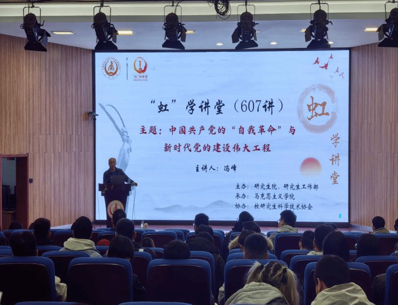 12月5日下午,由研究生院、研究生工作部主辦,馬克思主義學(xué)院承辦,校研究生科學(xué)技術(shù)協(xié)會(huì)協(xié)辦的“虹”學(xué)講堂第607講在南校區(qū)東院伯聲報(bào)告廳舉辦。長(zhǎng)安大學(xué)馬克思主義學(xué)院馮峰教授作題為“中國(guó)共產(chǎn)黨的‘自我革命’與新時(shí)代黨的建設(shè)偉大工程”的報(bào)告,相關(guān)學(xué)院共180余名師生參加講座。