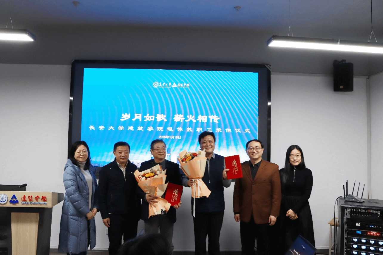 1月10日,建筑學院在南校區西院建筑館三樓會議室舉辦“歲月如歌 薪火相傳”——建筑學院退休教職工榮休儀式,向為學院奉獻多年的李明、胡立軍兩位榮休老師表達崇高敬意與美好祝福。院領導班子、各系所辦主任及教職工代表參會。儀式由院黨委副書記、副院長馮鵑主持。