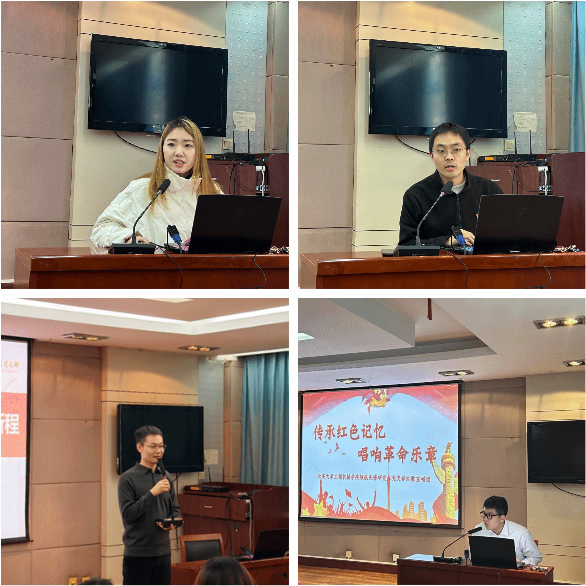 第四批全國黨建工作樣板支部——領航先鋒研究生黨支部組織委員王萌璠介紹了支部“黨建+”工作特色,重點分享了支部政治理論學習和實踐幫扶育人的經驗。西安建筑科技大學機電工程學院研究生第一黨支部書記蘇晚馳介紹了學院“紅色齒輪”黨建工程。魏斌斌講授“立制造強國志,做強國奮斗青年”主題黨課,他從親身經歷出發分享了作為一名駐村干部的收獲與感悟。領航先鋒研究生黨支部紅歌宣唱團成員張宇洋領學紅歌《游擊隊歌》,全體成員在領航先鋒研究生黨支部紅歌宣唱團成員的帶領下合唱《游擊隊歌》,銘記先輩故事,傳承英烈精神。與會成員還圍繞“黨建創新做法和成功經驗”“黨建與科研雙融雙促”展開充分交流。