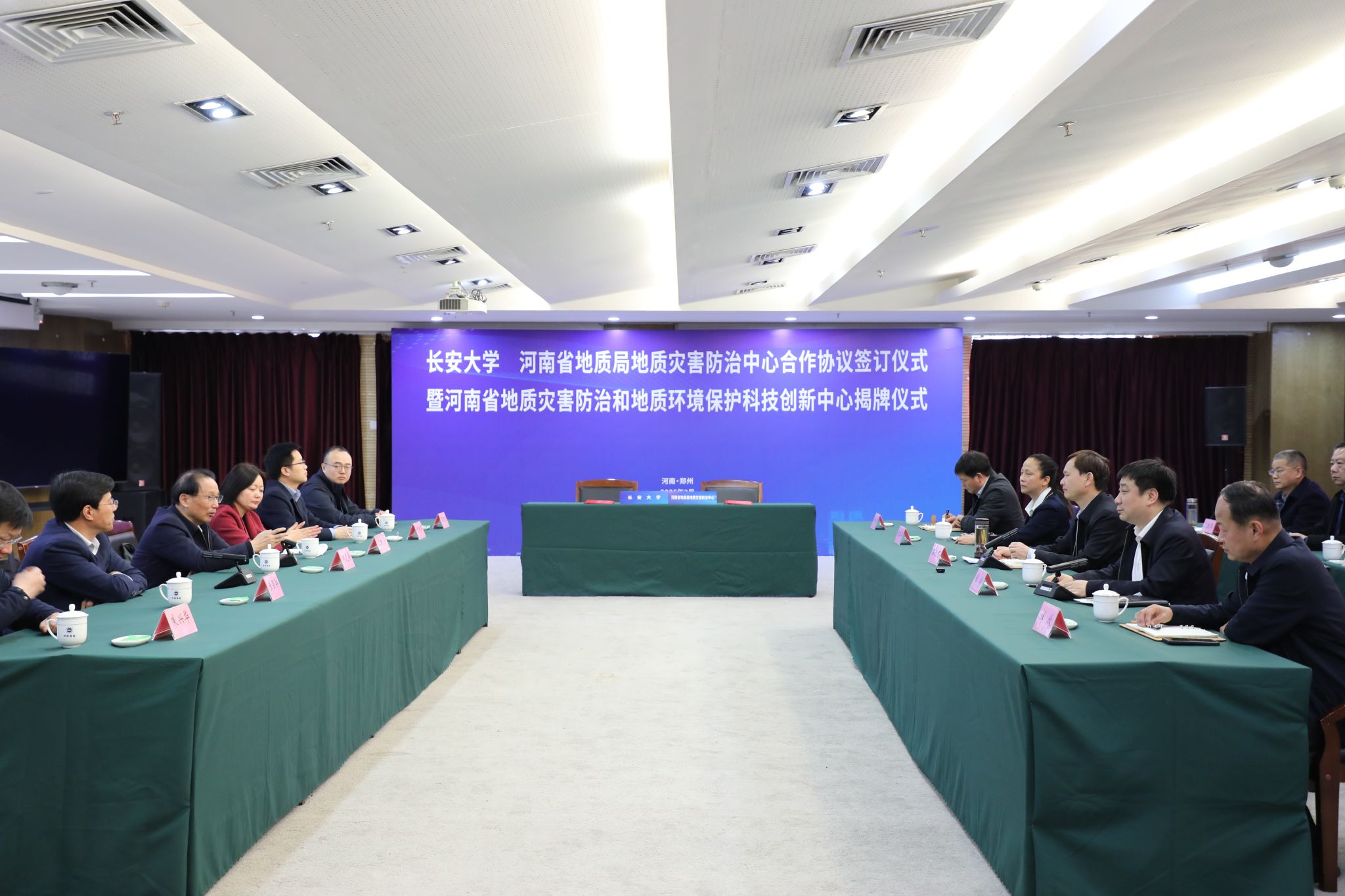 石迎軍對(duì)彭建兵一行表示熱烈歡迎,并表示,希望雙方加強(qiáng)合作交流,不斷提升科研水平和創(chuàng)新能力,結(jié)合河南省實(shí)際情況,在地質(zhì)災(zāi)害防治技術(shù)創(chuàng)新上,在“高校科研+行業(yè)應(yīng)用”合作模式上力爭(zhēng)實(shí)現(xiàn)新突破。