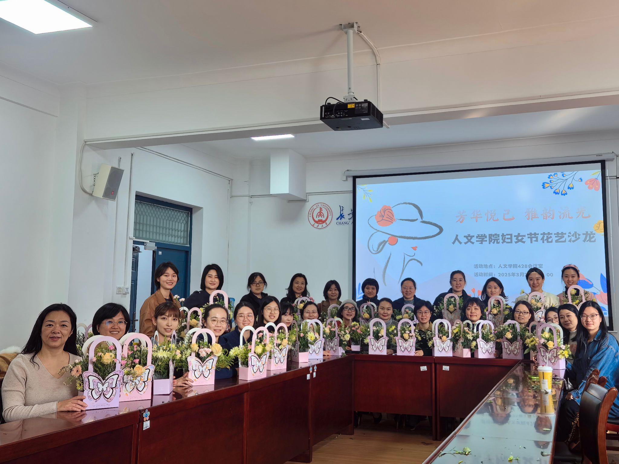 3月7日下午,人文學院工會在學院428會議室舉辦“芳華悅己,雅韻流光”主題活動,學院全體女教職工齊聚一堂,以花藝創作共慶第115個國際勞動婦女節。活動現場花香馥郁、笑語盈盈。人文學院工會主席孫希娟主持活動,并向全體女教職工致以節日祝福。