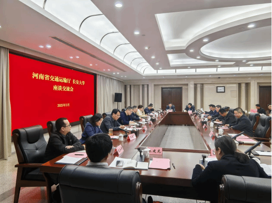 3月4日上午,與河南省交通運輸廳舉行座談會。河南省交通運輸廳黨組書記、廳長高建立會見汪海年一行,黨組成員、副廳長靳明等出席座談會。高建立對汪海年一行的到來表示熱烈歡迎,他介紹了河南省在交通新質生產力發展、智慧交通建設等方面的戰略規劃,對長安大學長期對河南交通運輸工作的支持表示感謝,希望雙方強化在關鍵技術材料與工藝、基礎設施監測預警與安全防護、交通運輸治理能力提升和治理體系建設、交通人才培養與培訓等方面的合作,為河南率先實現交通運輸現代化提供科技支撐。汪海年介紹了學院在學科建設、人才培養、科研成果等方面的有關情況,希望深化在科技成果轉化應用、重大科技攻關、人才培養等方面的交流與合作。