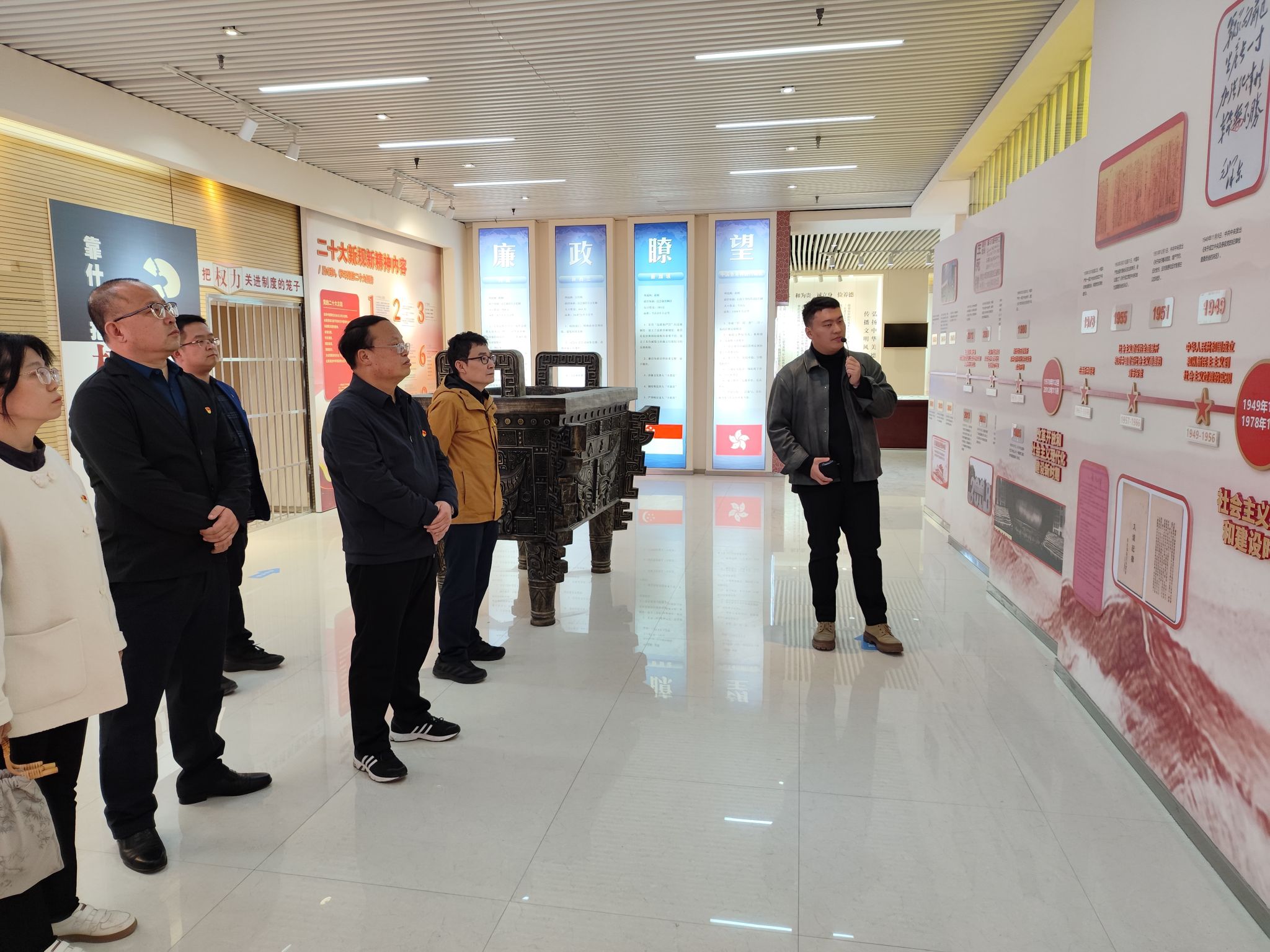 在講解員的引導下,大家參觀了以“講政治鑄忠誠”為主題的黨風廉政教育展廳,展廳分為“不敢腐”“不能腐”“不想腐”三個板塊。通過聆聽講解、觀看圖文展板、多媒體影像和典型案例剖析,全體人員深入學習了中國共產黨百年反腐歷程中的寶貴經驗,深刻領會了新時代黨風廉政建設和反腐敗斗爭的重要部署,并從近年來查處的違紀違法典型案例中汲取教訓,接受了一場直擊心靈的警示教育。參觀過程中,鮮活的案例、沉痛的懺悔、莊嚴的警示,讓每一位黨員干部深刻認識到“貪廉一念間,榮辱兩重天”的深刻內涵。