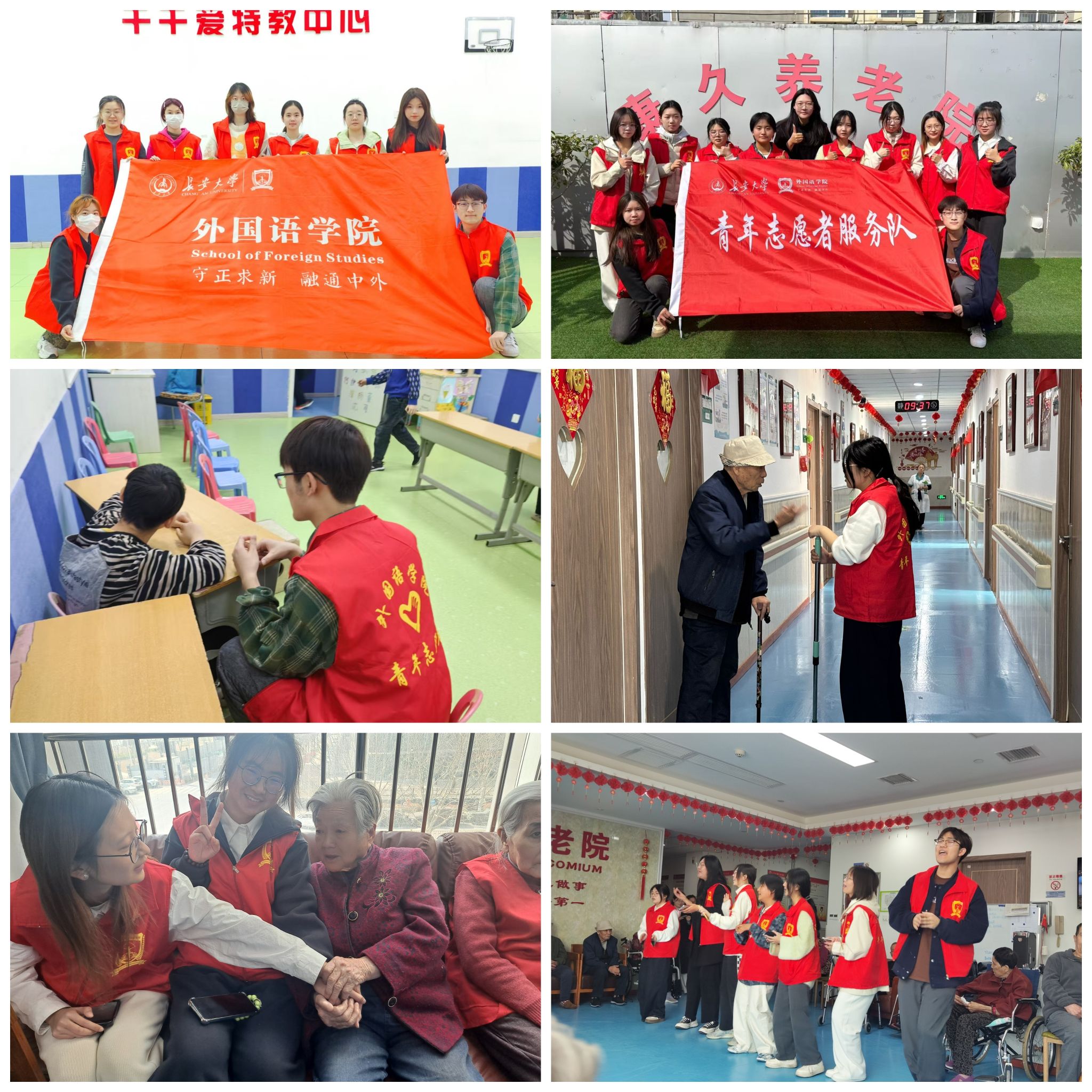 關愛特殊群體,傳遞溫暖力量。3月13日,學院組織8名大學生志愿者赴特教中心,開展第四期“千千愛”關愛心智障礙兒童志愿活動,陪伴心智障礙兒童做游戲、畫畫、講故事,用耐心和愛心為孩子們帶去溫暖與歡樂,幫助他們打開心扉。3月22日,學院組織11名大學生志愿者走進西安市康久養(yǎng)老院,開展第六期“暖春鋒行·律動銀齡”獻溫暖志愿活動,志愿者們打掃室內衛(wèi)生、提供生活幫助、表演文藝節(jié)目,豐富老年人的精神文化生活,老人們感受到了濃濃的溫暖與關懷。